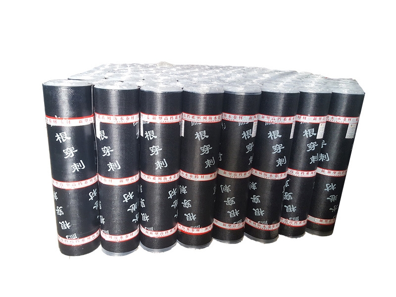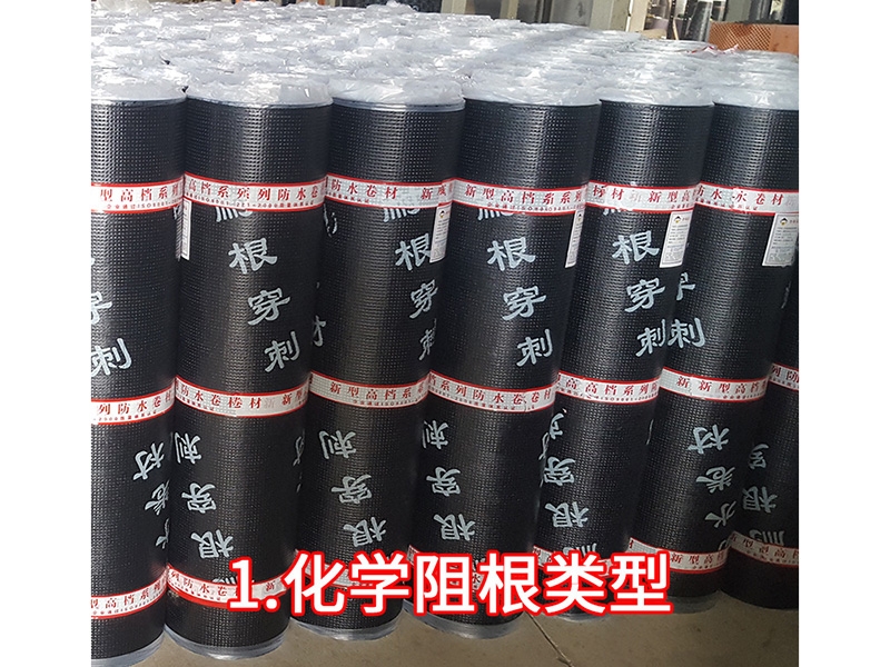 种植屋面用耐根穿刺防水卷材是以长纤聚酯纤维毡,复合铜胎基或铜箔胎基为卷材胎基,以化学阻根剂的SBS/APP改性沥青为涂盖材料,两面覆以聚乙烯膜,细砂或矿物粒料为隔离材料制成的改性沥青卷材。